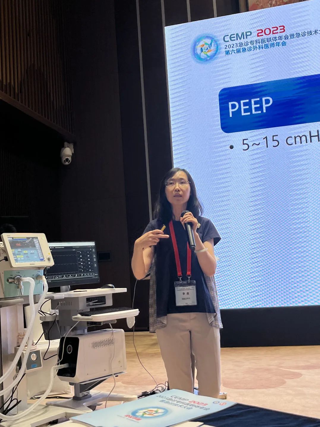 此外,来自中国科学技术大学附属第一医院(安徽省立医院)的金魁主任在讲授主旨为“异常波形分析”的论坛讲座时,使用了天堰科技“模拟肺”内置的呼吸力学模型——“轻度COPD有自主呼吸 老年男性”,帮助参会学员更好的理解存在肺部疾病患者机械通气时通气波形的特点及监测参数异常改变。金魁主任对“模拟肺”给予了高度肯定,并建议学员课后有时间都可以进行实操训练。
